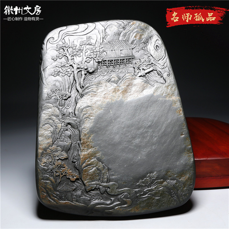 孤品名师作品安徽歙砚《雅集图》老坑龙鳞水波籽料砚台高档文P房热门设计联盟服务商