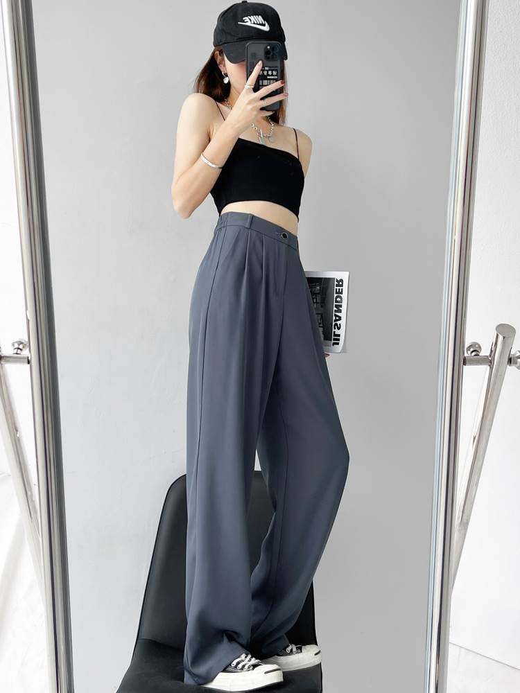 灰色西装裤阔腿裤女裤子大码春秋夏季工装高腰直筒裤垂感胖mm薄款热门设计联盟服务商