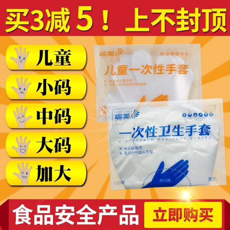 一次性手套女儿童小号男食品加厚餐饮厨房加大塑料家用透明100只热门设计联盟服务商