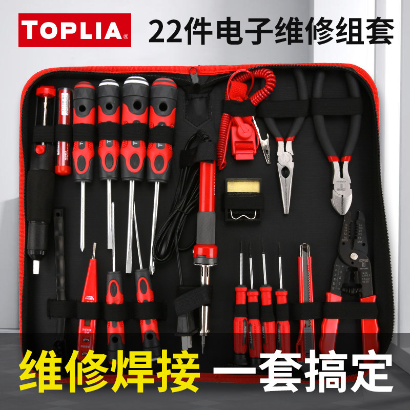 拓利亚22件电子电工维修组套电烙铁套装家用电子电路维修手动工具热门设计联盟服务商
